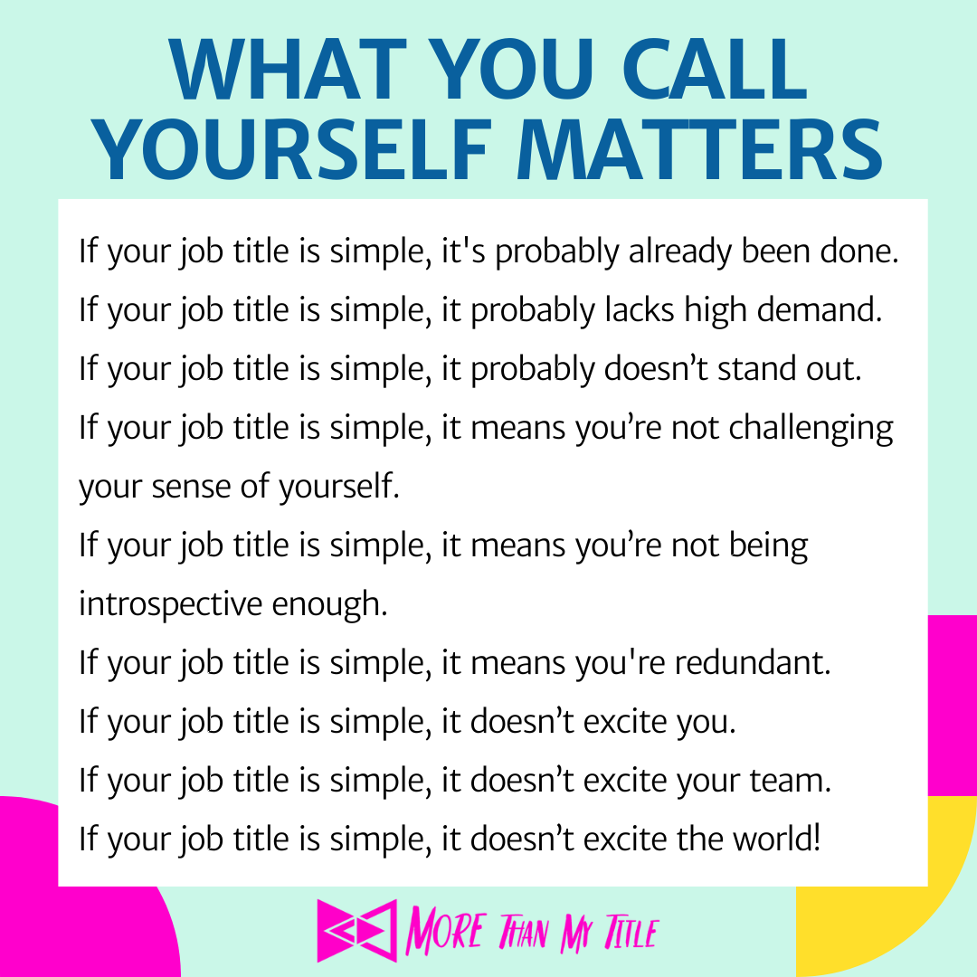 Each of these titles not only informs others what you do, but how and why you do it. It’s identity branding at its finest—more specific than a buzzword, more magnetic than a traditional title.